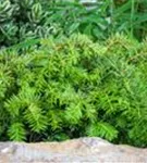 Besonders dekorativ sind die roten, beerenartigen Zapfen von Taxus baccata 'Repandens'. Diese erscheinen ab September.Die jungen Zapfen haben eine gelbe Färbung.