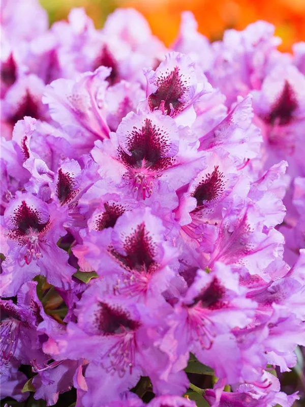 Rhododendron 'Rhododendronpark Graal-Müritz' bildet von April bis Mai zahlreiche violette Blüten.