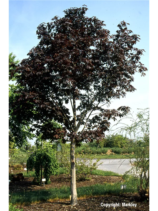 Acer platanoides 'Royal Red' ist ein Herzwurzler und bildet, je nach Boden, fein verzweigte Wurzeln.