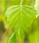 Die sommergrünen Blätter der Trauerbirke 'Youngii' sind mittelgrün, dreieckig, wechselständig, gesägt. Diese sind etwa 3 - 7 cm groß. Trauerbirke 'Youngii' zeigt sich leuchtend gelb im Herbst.