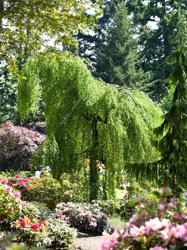 Trauerbirke 'Youngii' ist auch unter diesem Namen bekannt: Sand-Birke, Weiß-Birke, Warzen-Birke.