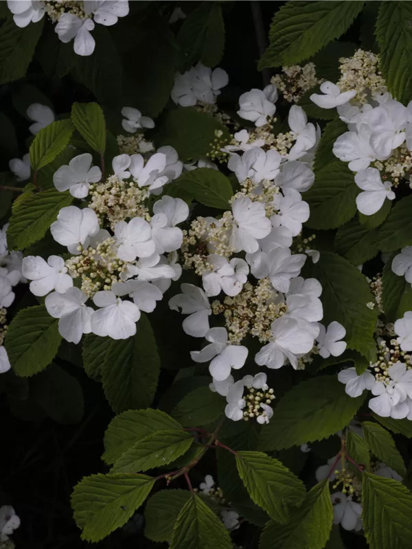 Viburnum plicatum 'Summer Snowflake' wächst kompakt und erreicht gewöhnlich eine Höhe von 60 - 80 cm und wird bis zu 60 - 80 cm breit.
