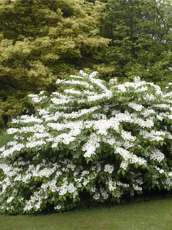 Der Japanische Schneeball 'Summer Snowflake' ist sommergrün.