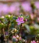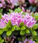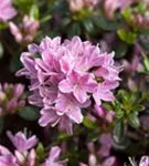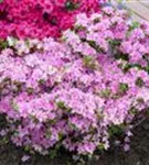Rhododendron obtusum 'Kermesina Rose' bildet von Ende Mai bis Anfang Juni zahlreiche trichterförmige, rosa-weiße Blüten. Diese werden etwa 2 - 3 cm groß.