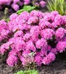 Japanische Azalee 'Kermesina Rose' ist ein kompakt wachsender Zwergstrauch. Sie erreicht gewöhnlich eine Höhe von 50 - 60 cm und wird ca. 80 - 90 cm breit.
