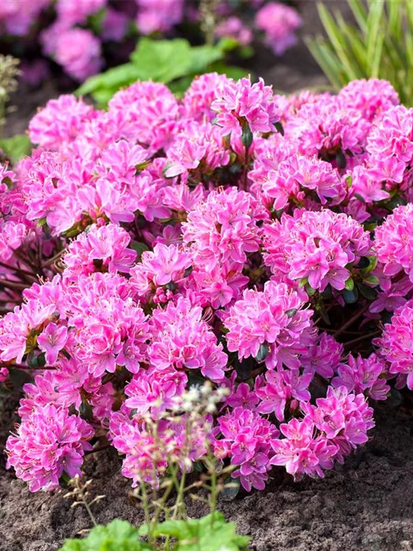 Rhododendron obtusum 'Kermesina Rose' ist ein Flachwurzler und bildet, je nach Boden, fein verzweigte Wurzeln.