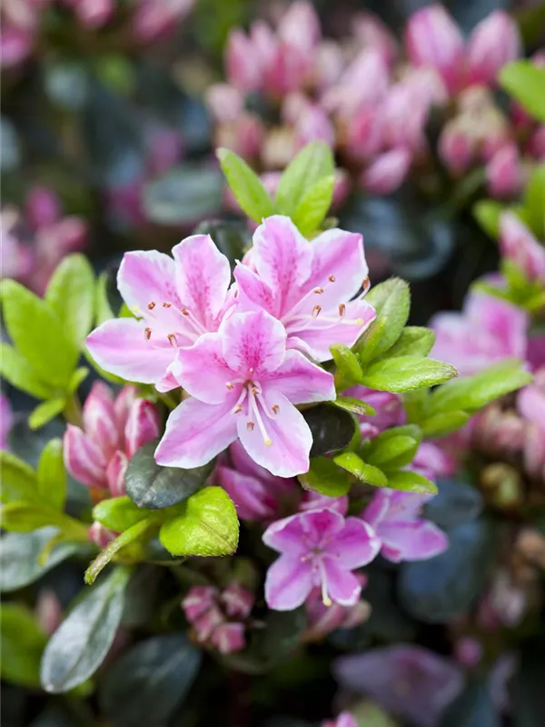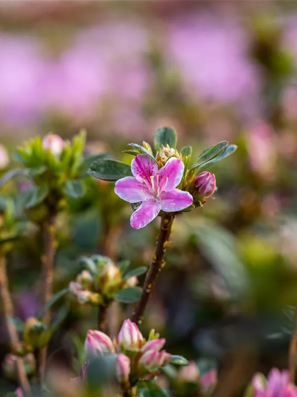 Die Japanische Azalee 'Kermesina Rose' weist eine gute Frosthärte auf.