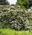 Japanischer Blumen-Hartriegel 'Cappuccino'® ist ein aufrecht und trichterförmig wachsender Großstrauch. Er erreicht gewöhnlich eine Höhe von 4 - 6 m und wird ca. 2 - 3 m breit. Langsam wachsend.