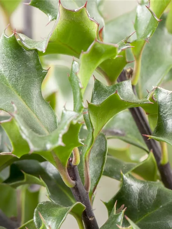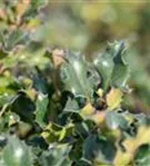 Die immergrünen Blätter der Stechpalme 'Blue Angel'® sind blau-grün, lanzettlich, glänzend, wechselständig, gezähnt.
