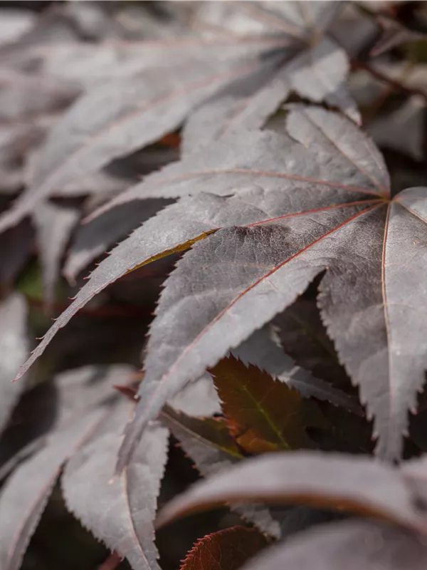 Acer palmatum 'Bloodgood' ist ein Flachwurzler und bildet, je nach Boden, fein verzweigte Wurzeln.