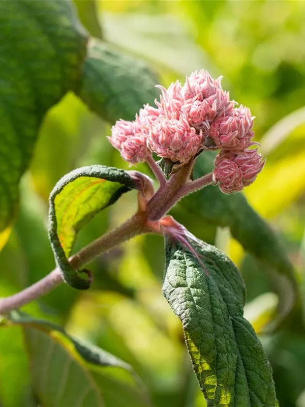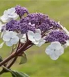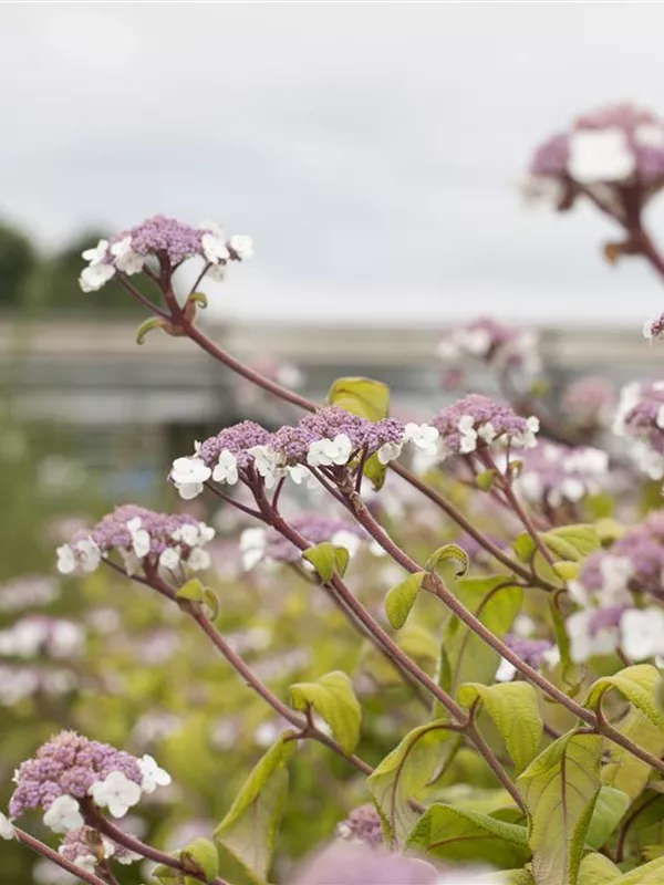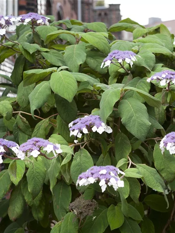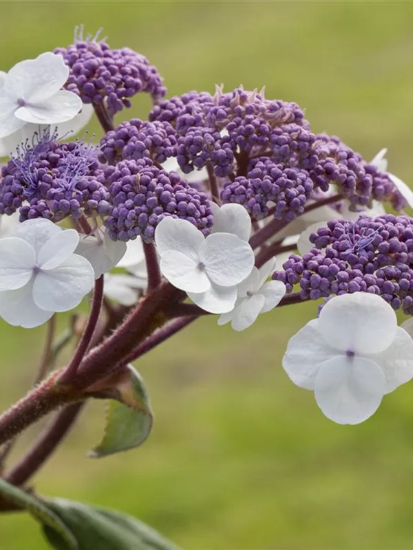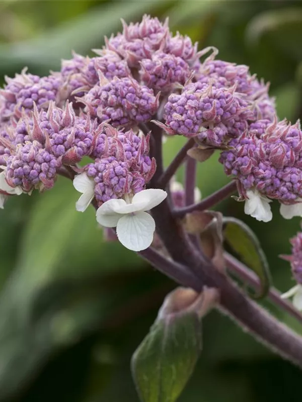Hydrangea aspera 'Macrophylla' bringt von Juli bis August violette, rosa-blaue Blüten hervor. Diese werden etwa 15 - 30 cm groß.