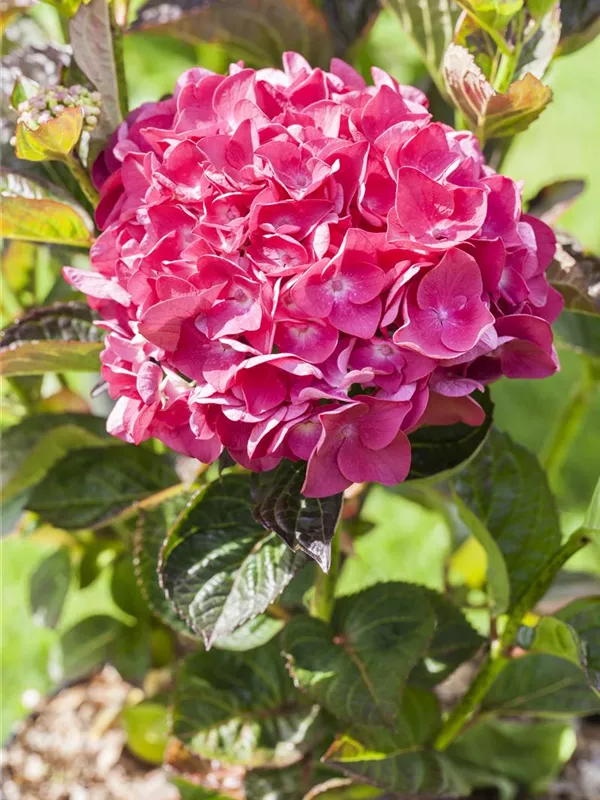 Die Bauernhortensie 'Merveille Sanguine' weist eine gute Frosthärte auf.