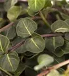 Hoher Blattschmuckwert. Die immergrünen Blätter der Echte Rebhunbeere sind dunkelgrün, eiförmig.