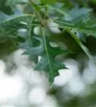 Die sommergrünen Blätter der Amerikanische Roteiche sind dunkelgrün, eiförmig, wechselständig, gelappt. Diese sind etwa 10 - 23 cm groß. Amerikanische Roteiche zeigt sich leuchtend orange-rot bis scharlachrot im Herbst. Lange haftend.