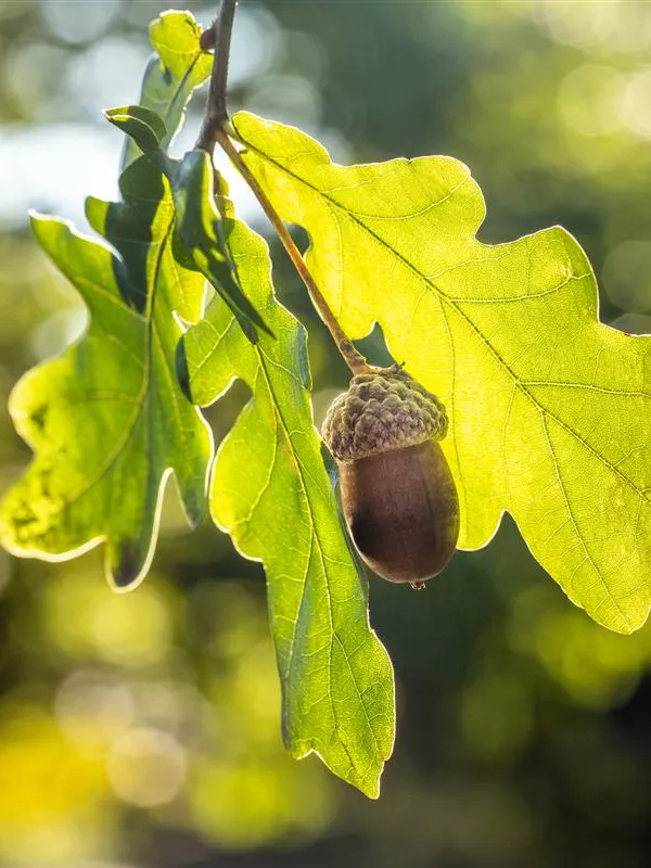 Besonders dekorativ sind die hellgrünen Früchte von Quercus robur. Diese erscheinen ab September und sind klein.