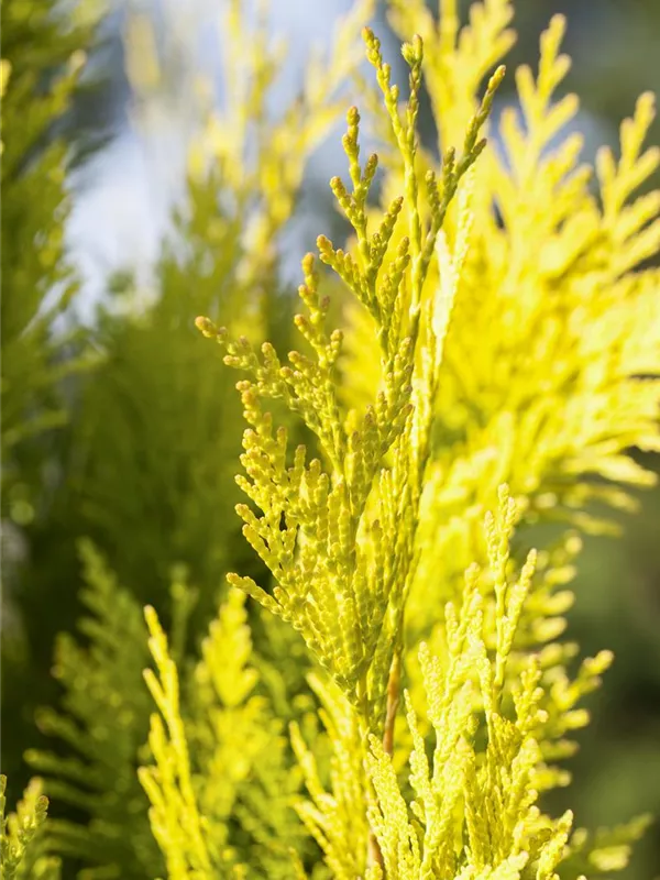 Sehr dekorativ. Der Große Lebensbaum '4ever' GOLDY®(s) ist immergrün. Seine Nadeln sind goldgelb, schuppenförmig.