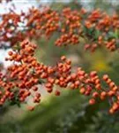 Besonders dekorativ sind die orangefarbenen, runden Früchte von Pyracantha 'Orange Charmer'. Diese erscheinen ab September. Haften sehr lange.
