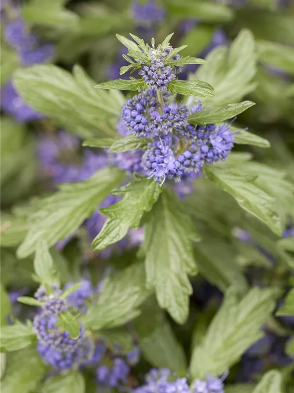 Die Bartblume 'Blue Balloon'® (Caryopteris clandonensis 'Blue Balloon'®) bildet blaue, duftende Blüten von August bis September.