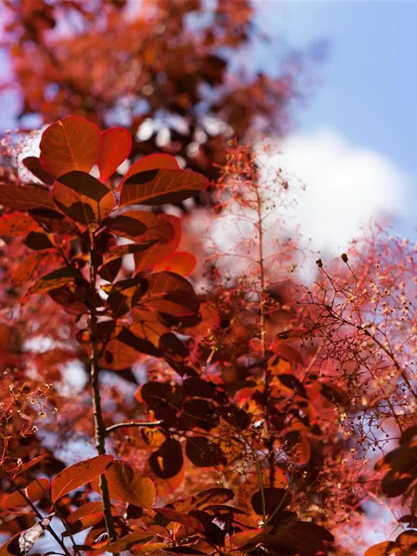 Wenn weißes Licht auf das intensiv gefärbte Laub dieses Ziergehölzes trifft, erstrahlt der rote Burgunder in seiner ganzen Pracht!