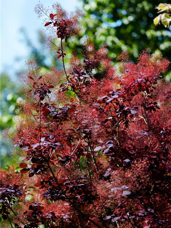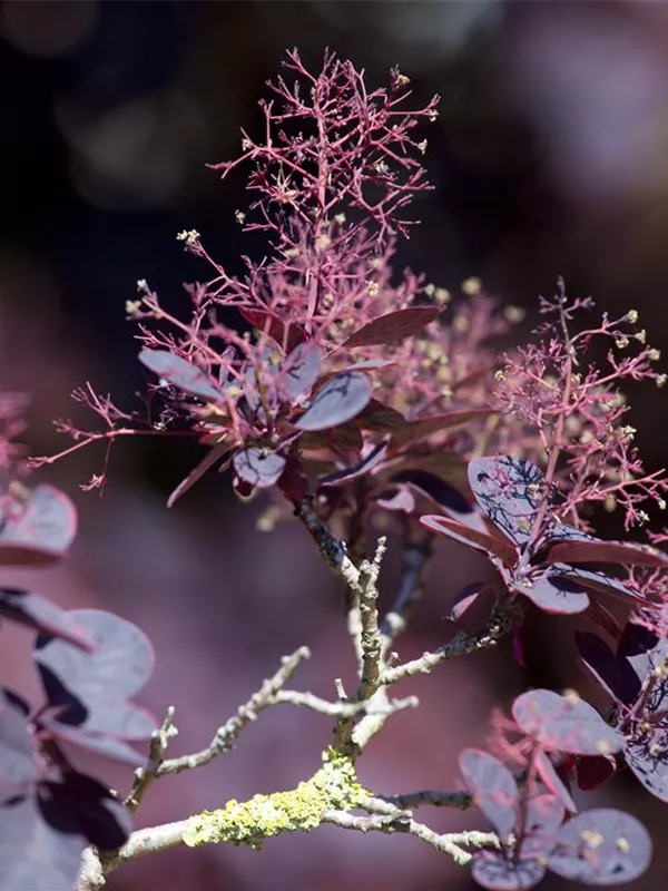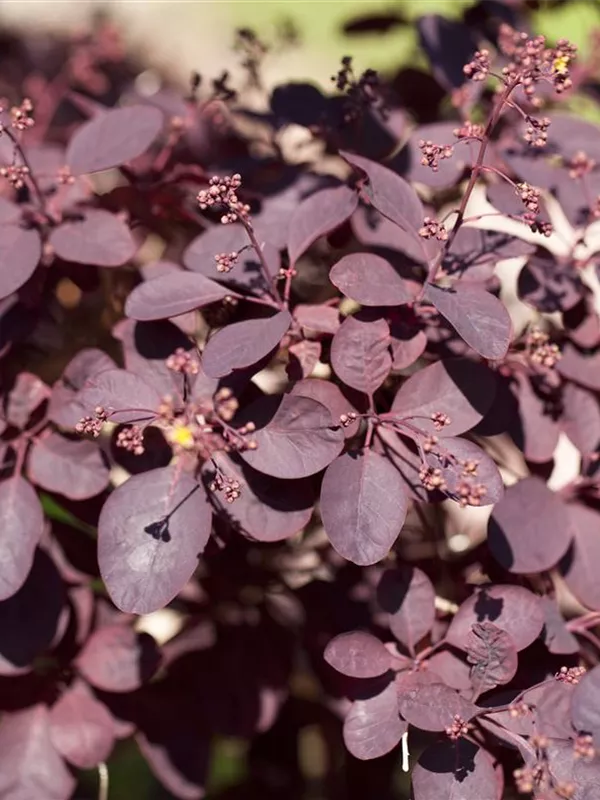Der Rote Perückenstrauch 'Royal Purple' bildet rot-braune Blüten von Juni bis Juli.