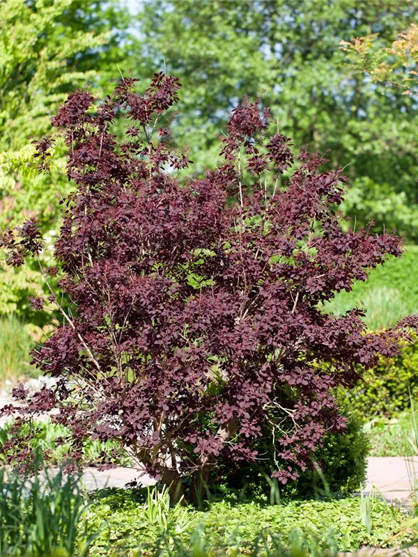 Cotinus coggygria 'Royal Purple' wächst ausladend und erreicht gewöhnlich eine Höhe von 2 - 3 m und wird bis zu 1 - 2 m breit.