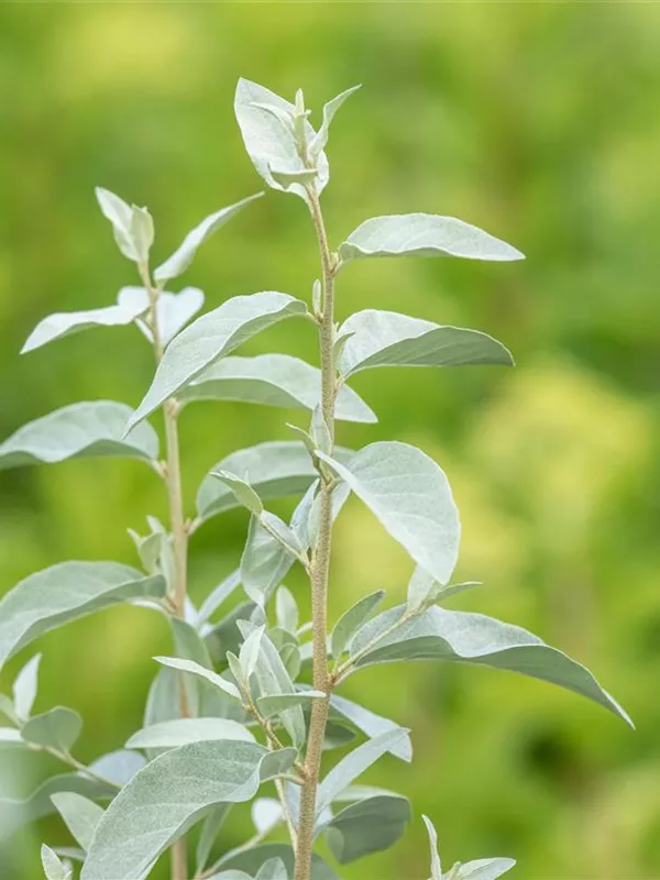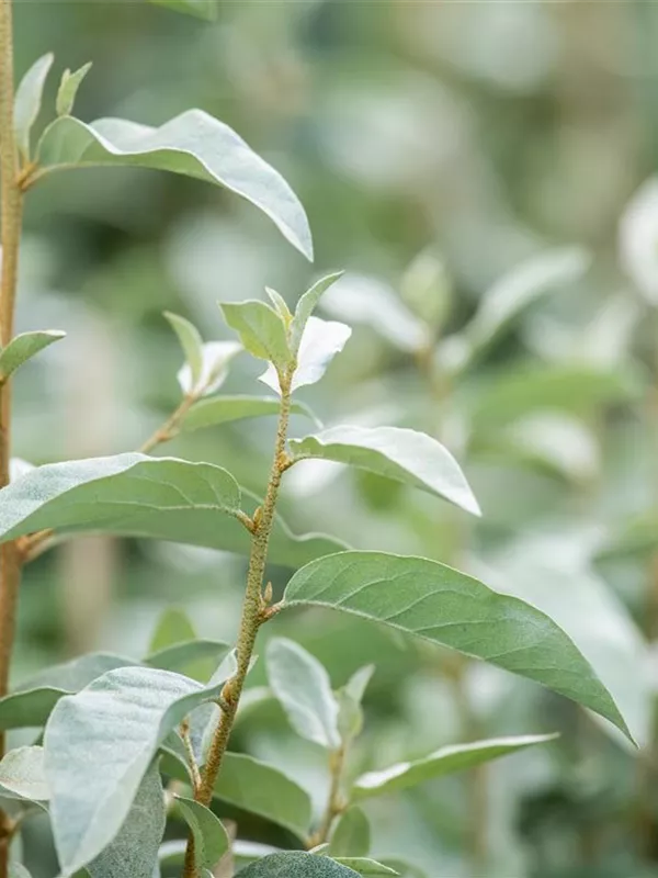 Die Triebe von Elaeagnus commutata 'Zempin' sind silbergrau.