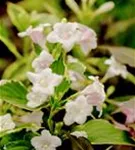 Buntblättrige Weigelie 'Nana Variegata' ist ein buschig, breit und kompakt wachsender Kleinstrauch. Sie erreicht gewöhnlich eine Höhe von 1,5 - 2 m und wird ca. 1 - 2,5 m breit.