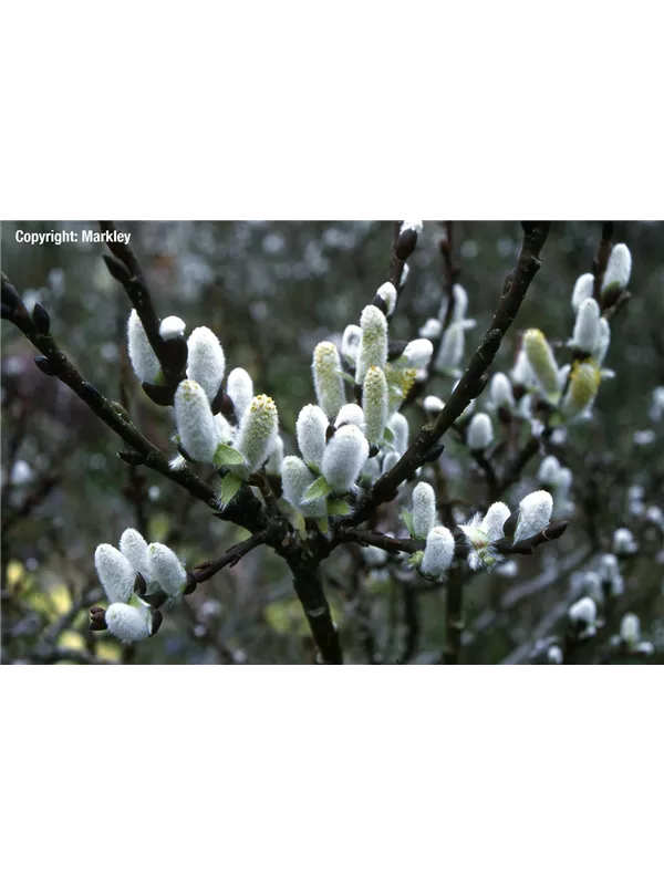 Salix hastata 'Wehrhahnii' bringt von April bis Mai silberweiße, gelbe, in Kätzchen angeordnete Blüten hervor.