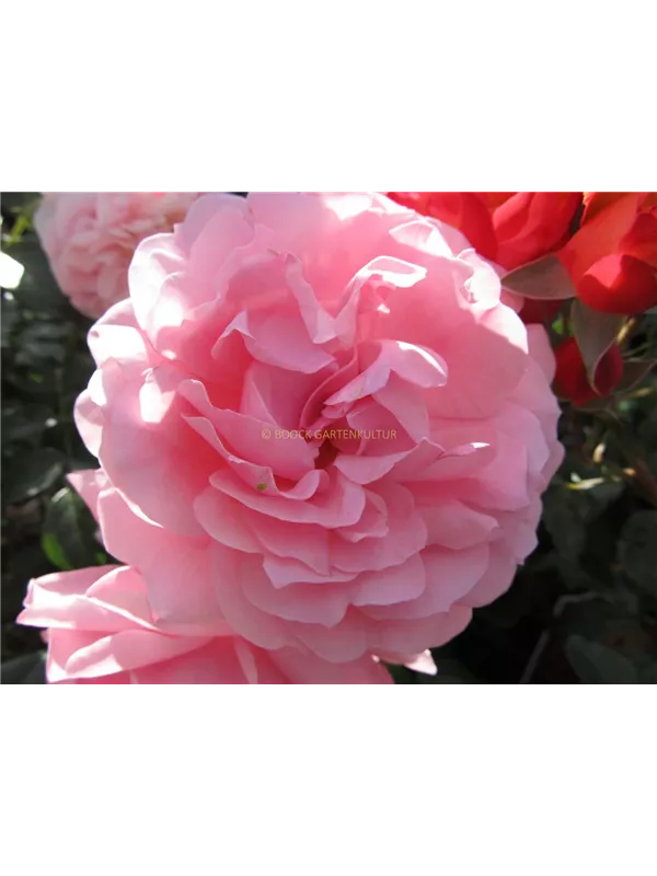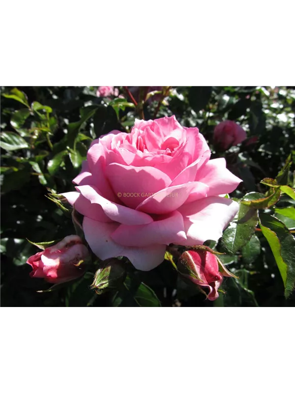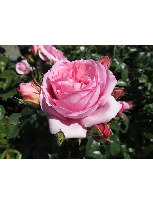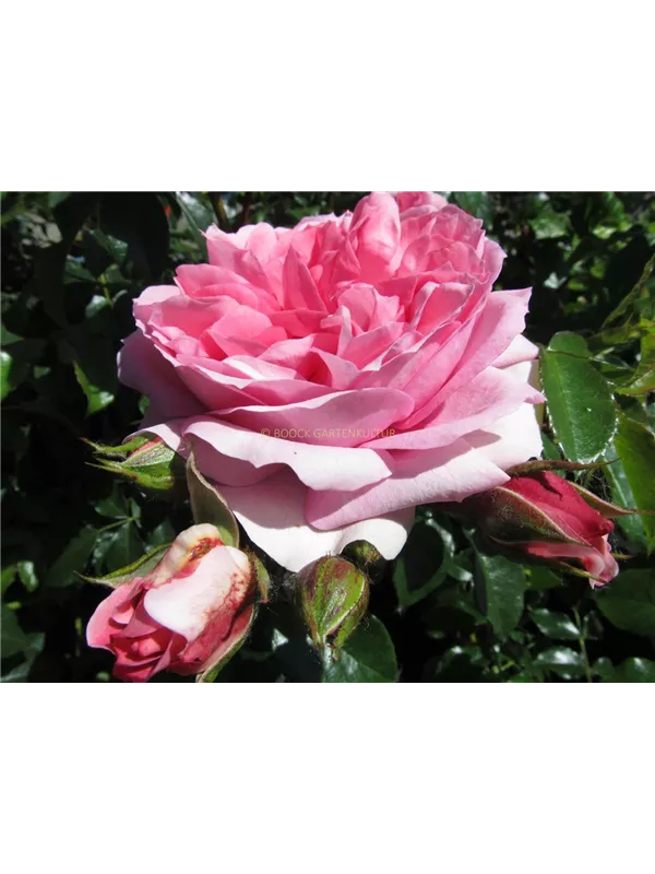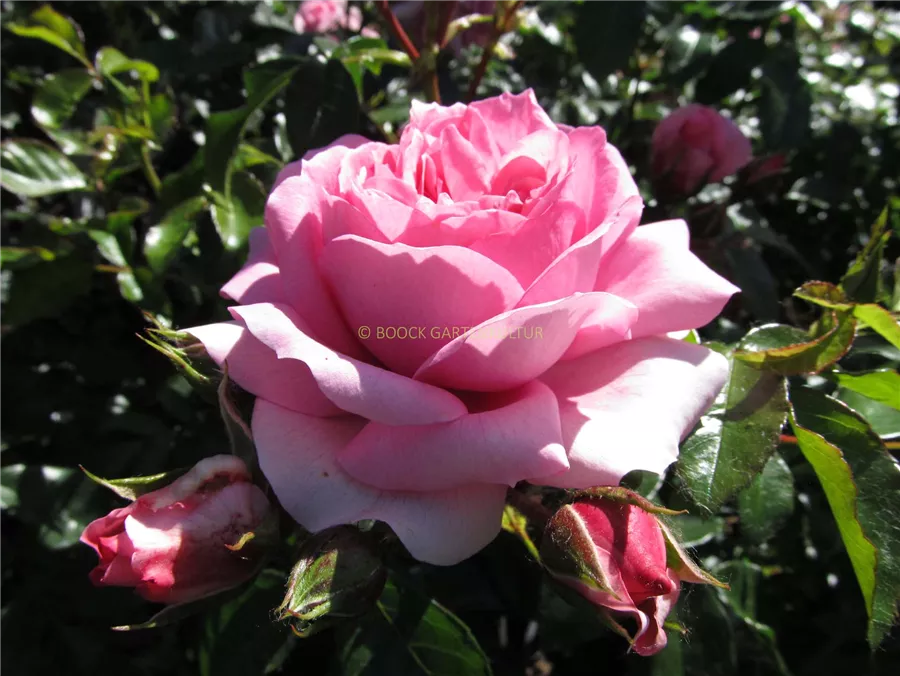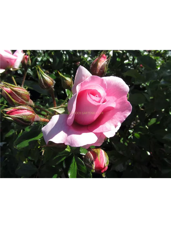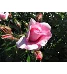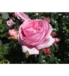 Die rosafarbenen, starkgefüllten, schalenförmigen Blüten der Beetrose 'Rosenfee'® erscheinen in Dolden von Juni bis September. Diese werden etwa 7 - 8 cm groß und sind leicht duftend.