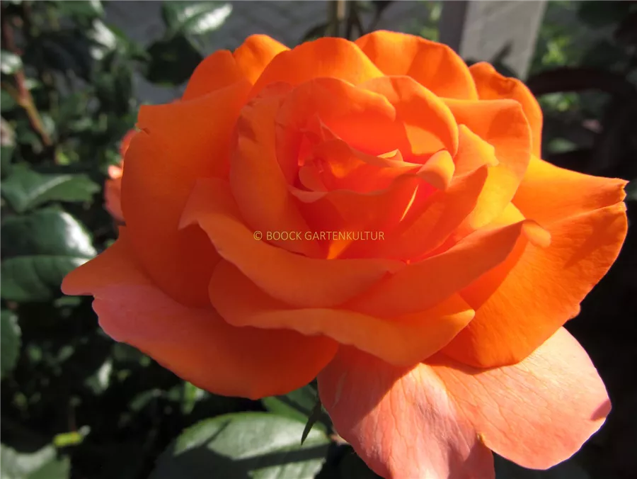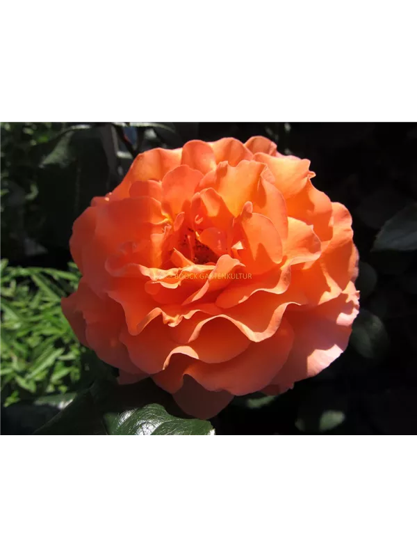 Die orangefarbenen, schalenförmigen Blüten sind gefüllt und erscheinen von Juni bis Oktober.