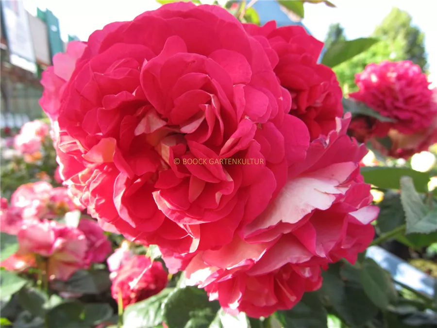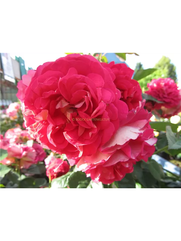 Rosa 'Die Sehenswerte'® bringt von Juni bis September rote, gelbe, weiße, rosafarbene, rot-gelbe, gefüllte, schalenförmige, in Dolden angeordnete Blüten hervor. Diese werden etwa 6 - 7 cm groß.