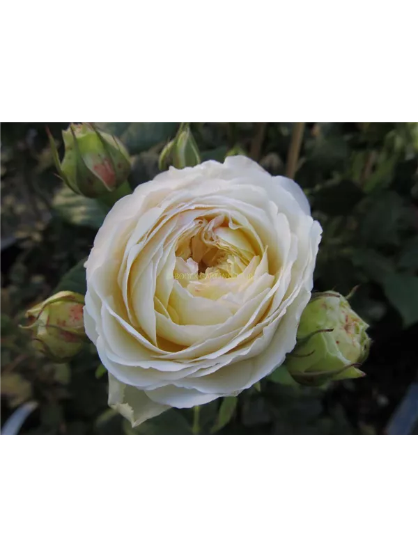 Strauchrose 'Claire Austin'® ist ein buschig und aufrecht wachsender Strauch, der eine Höhe von 1 - 1,2 m und eine Breite von 0,8 - 1 m erreichen kann.