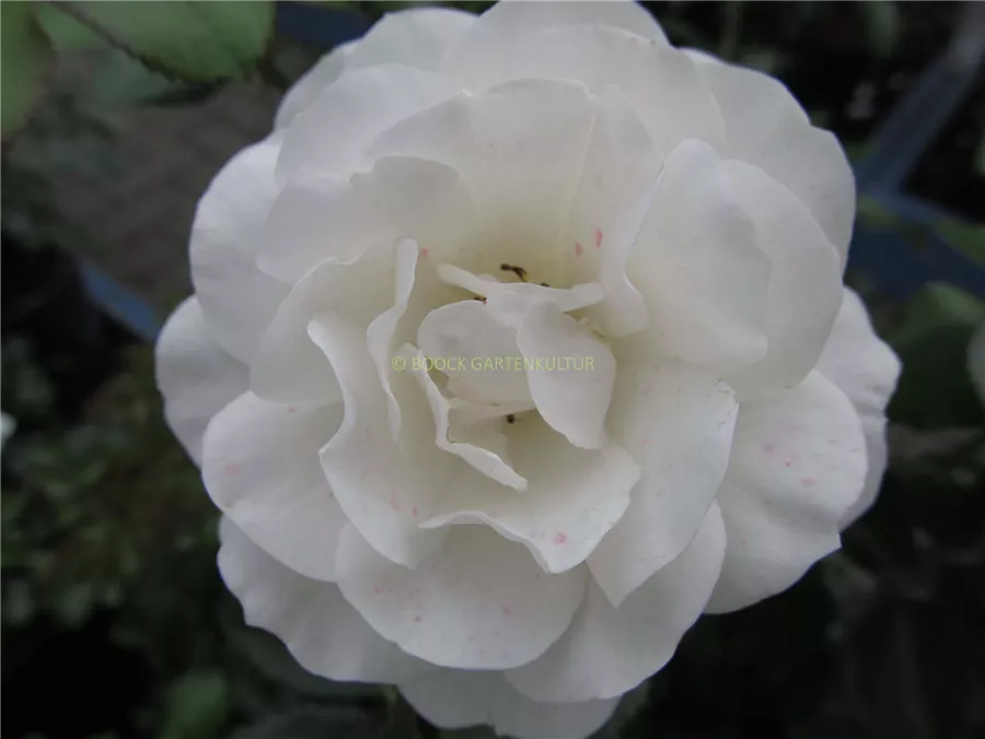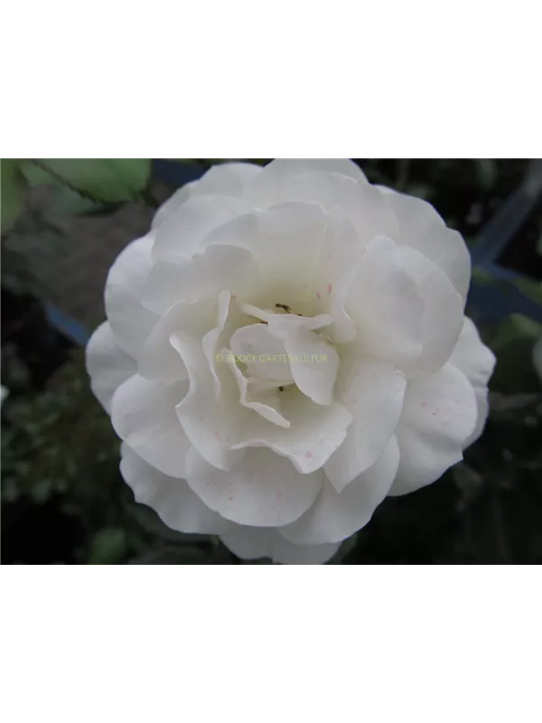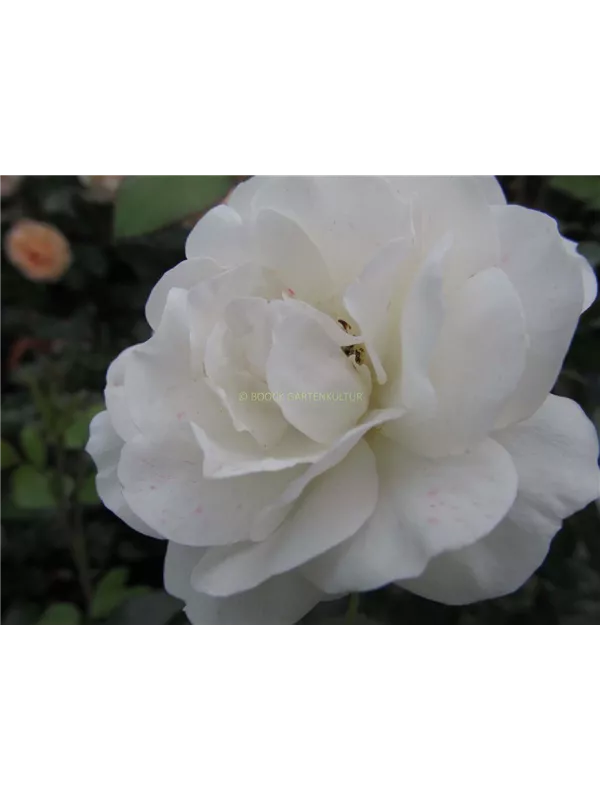 Die weißen, gefüllten, schalenförmigen Blüten der Beetrose 'Martin Luther'® erscheinen in Dolden von Juni bis September. Diese werden etwa 6 - 8 cm groß und sind leicht duftend.