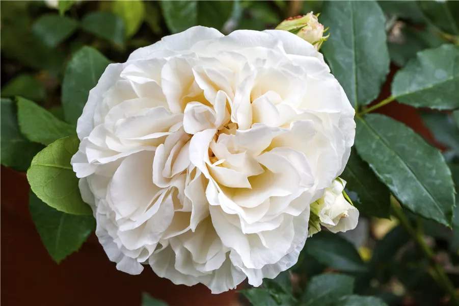 Die Strauchrose 'Boule de Neige' weist eine gute Frosthärte auf.