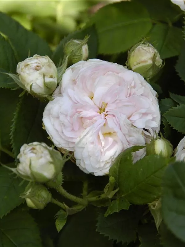 Die Triebe von Rosa 'Felicite Parmentier' sind bestachelt.
