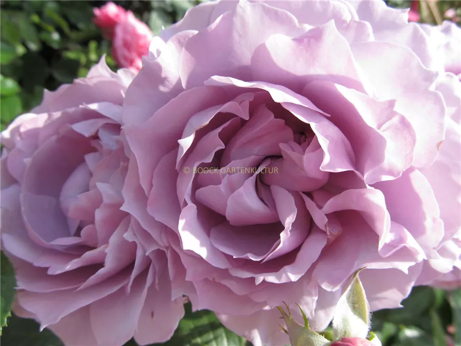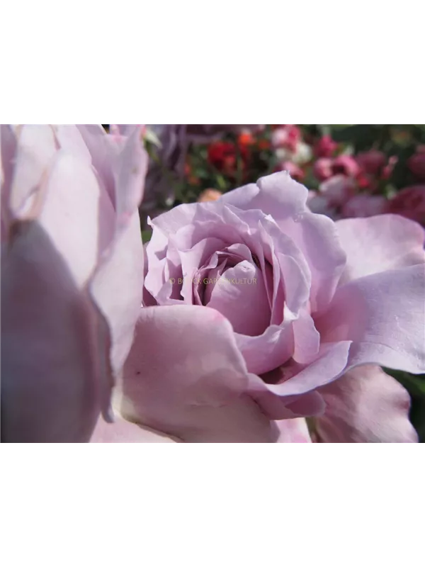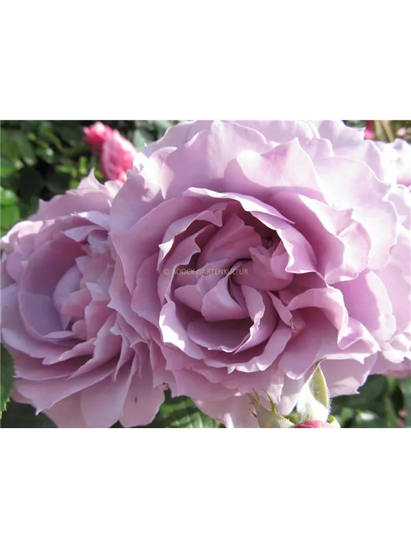 Die lilafarbenen, starkgefüllten, schalenförmigen Blüten der Beetrose 'Novalis'® erscheinen in Dolden von Juni bis September. Diese werden etwa 8 - 10 cm groß und sind leicht duftend.
