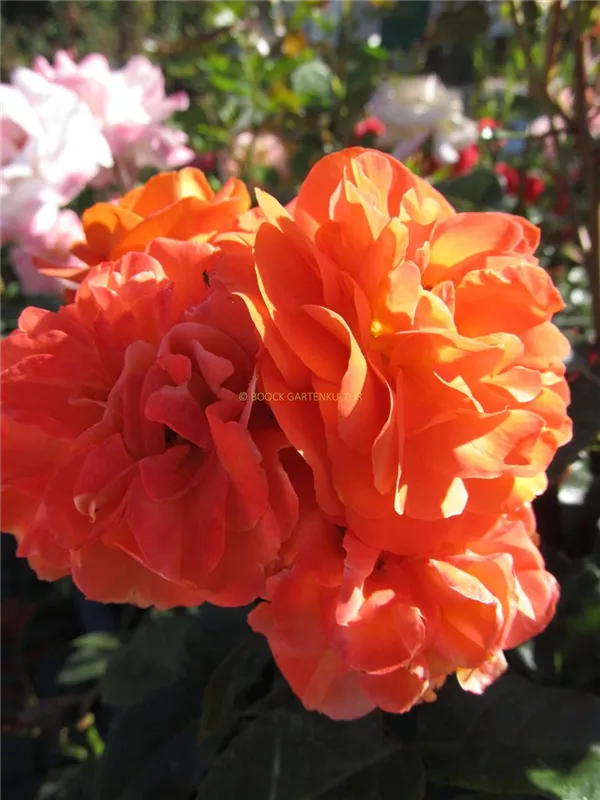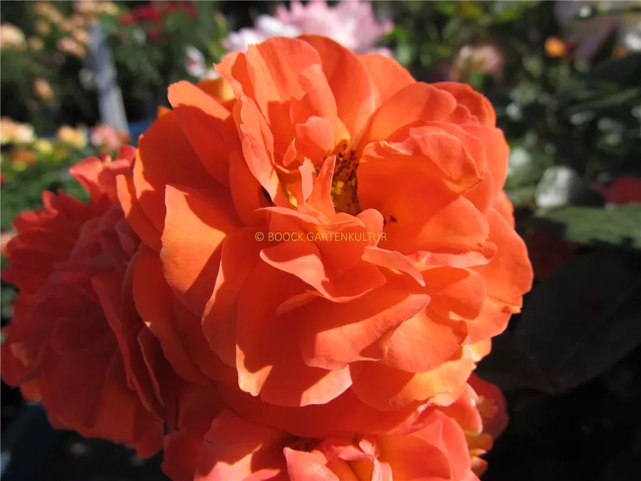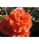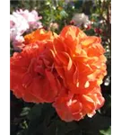 Die orangefarbenen, schalenförmigen Blüten sind gefüllt und erscheinen von Juni bis Oktober.
