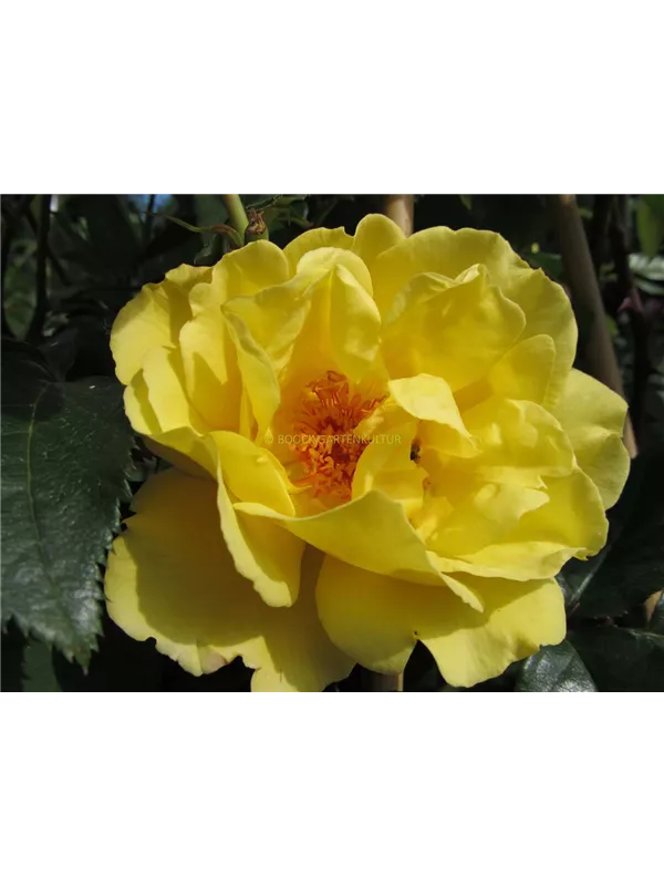 Die gelben, schalenförmigen Blüten erscheinen von Juni bis Oktober. Diese sind angenehm duftend.