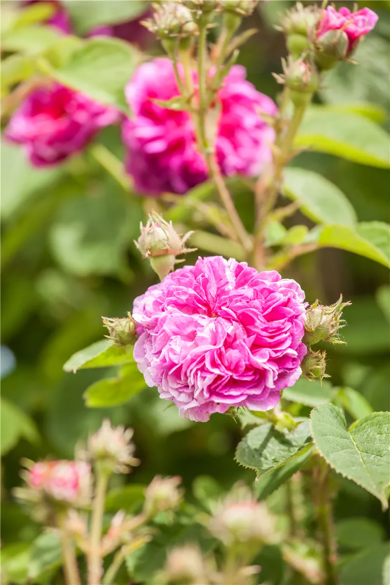 Die Triebe von Rosa 'Russeliana' sind bestachelt.