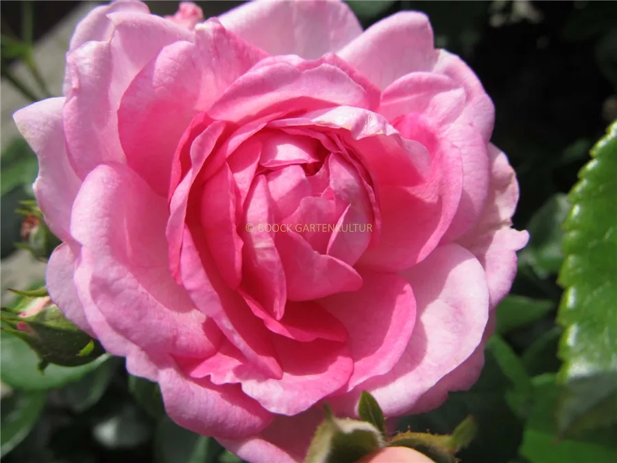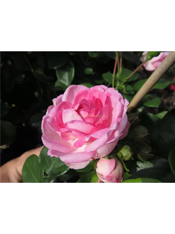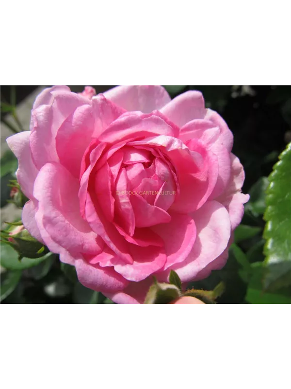 Die rosafarbenen, schalenförmigen Blüten sind gefüllt und erscheinen von Juni bis Oktober. Diese werden etwa 5 - 10 cm groß und sind angenehm duftend.