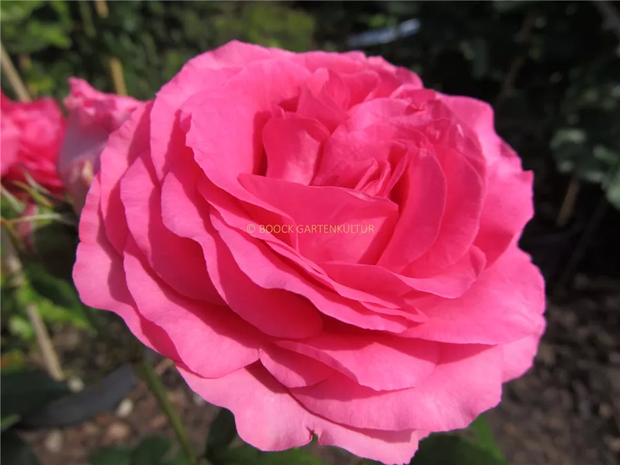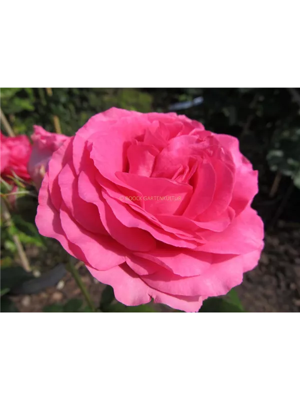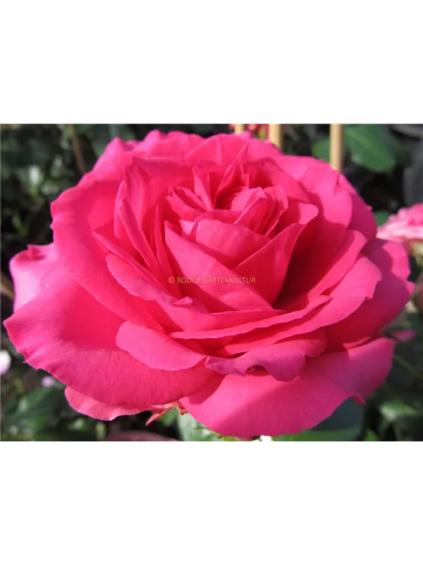 Die magentafarbenen, schalenförmigen Blüten sind gefüllt und erscheinen von Juni bis Oktober. Diese werden etwa 10 - 12 cm groß und sind angenehm duftend.