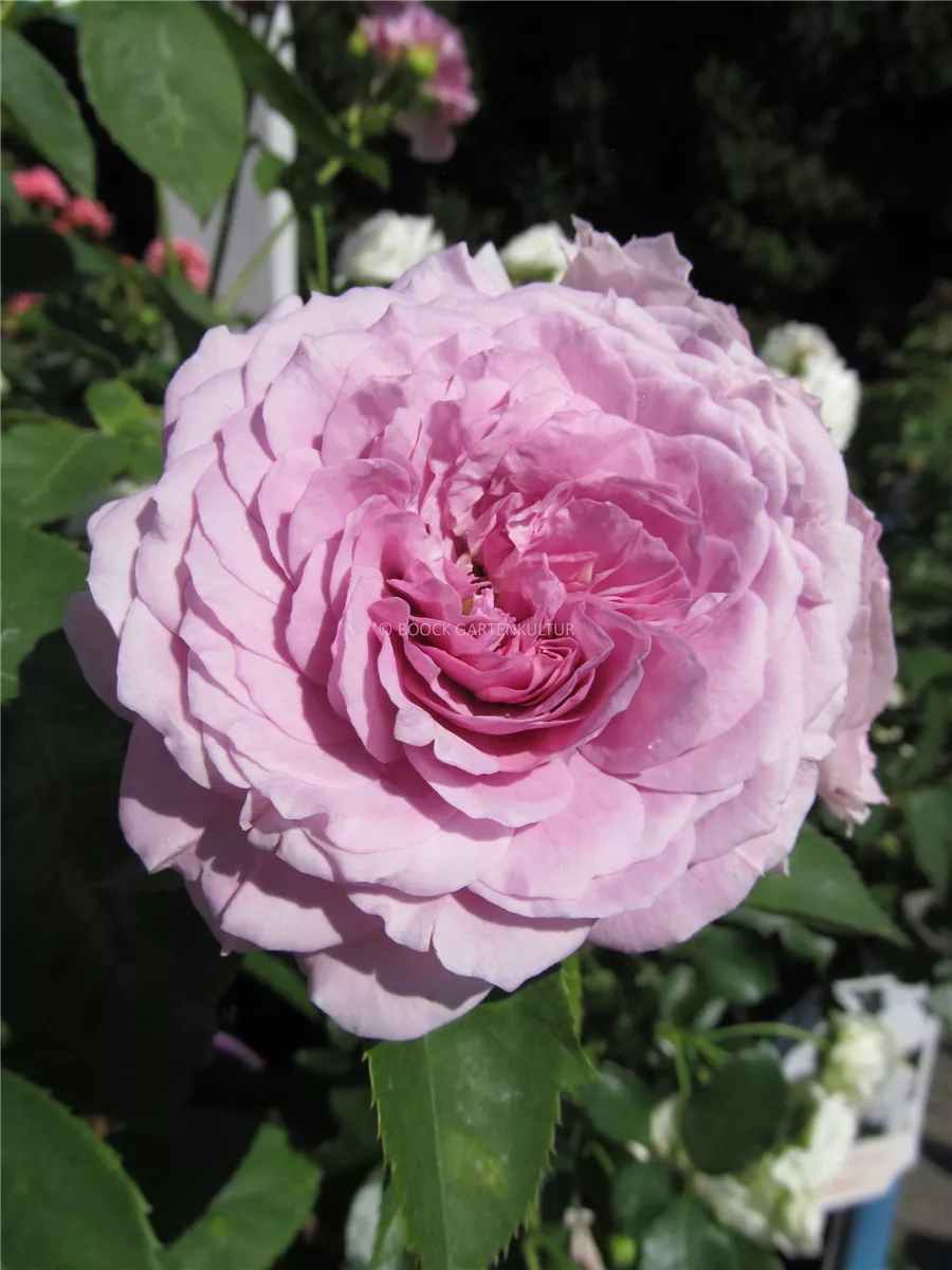 Die Zwergrose 'Lavender Ice'® setzt schöne Akzente gemeinsam mit: