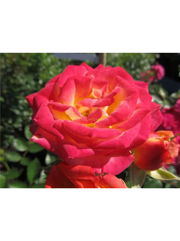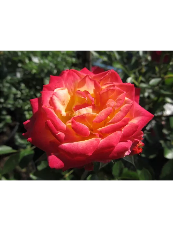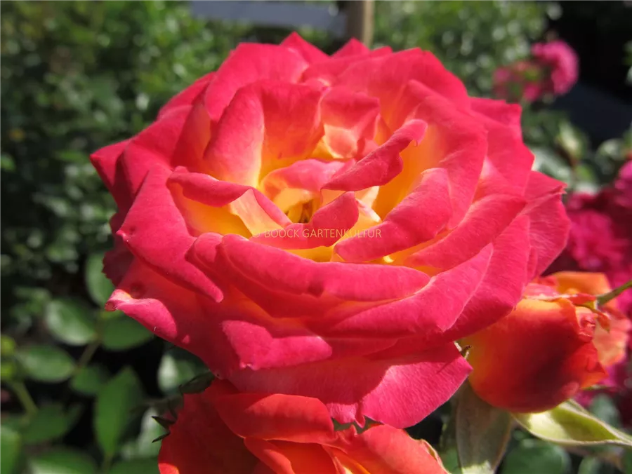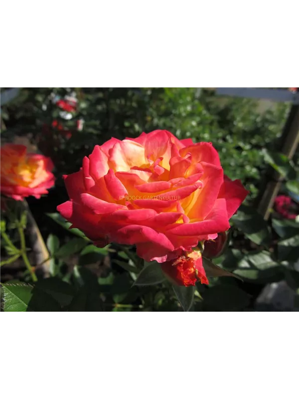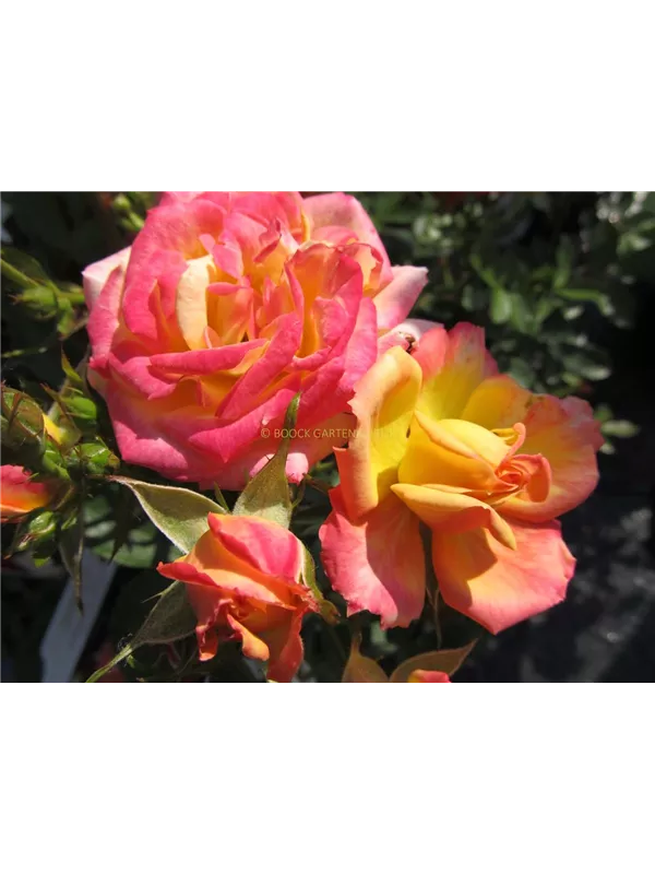 Zwergrose 'Little Sunset'® ist ein buschig und dicht wachsender Zwergstrauch, der eine Höhe von 30 - 40 cm und eine Breite von 30 - 40 cm erreichen kann.