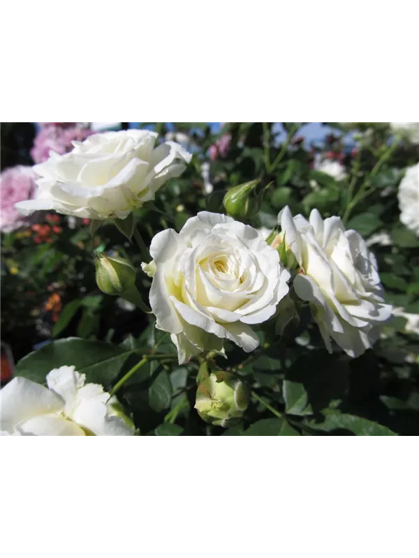 Die Zwergrose 'Schneeküsschen'® setzt schöne Akzente gemeinsam mit: