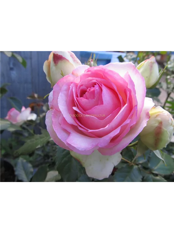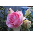 Strauchrose 'Eden Rose 85'® ist ein buschig, aufrecht und überhängend wachsender Strauch, der eine Höhe von 1 - 1,2 m und eine Breite von 60 - 80 cm erreichen kann.