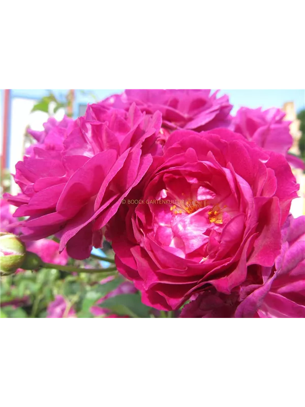 Die lilafarbenen, schalenförmigen Blüten sind halbgefüllt und erscheinen von Juni bis Oktober. Diese werden etwa 6 - 8 cm groß und sind stark duftend.
