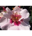 Die weiß-roten, schalenförmigen Blüten erscheinen von Juli bis August. Diese werden etwa 5 - 6 cm groß.