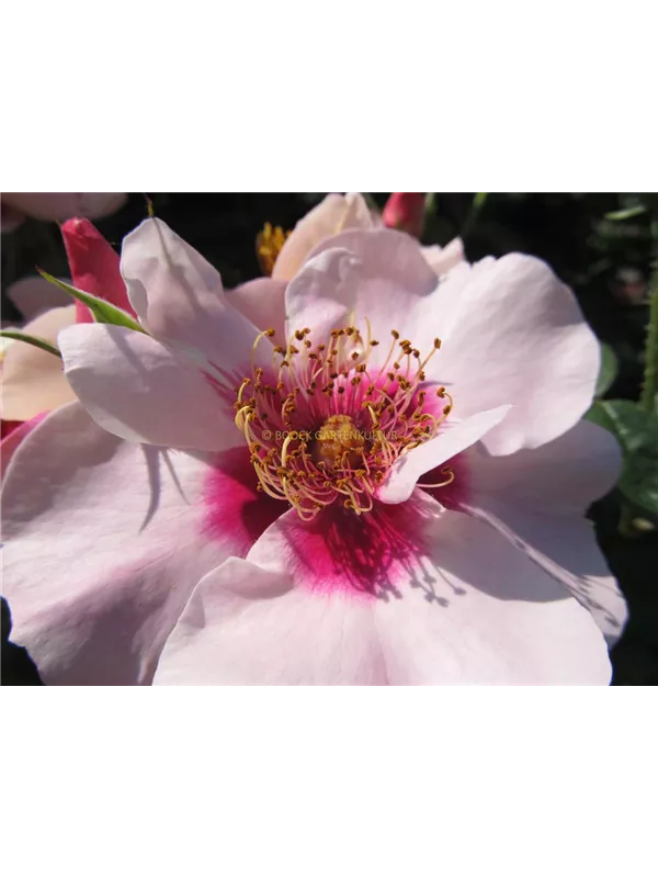 Die Triebe von Rosa persica 'SEE YOU® in red' sind bestachelt.