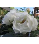Die weißen, schalenförmigen Blüten sind halbgefüllt und erscheinen von Juni bis Oktober. Diese werden etwa 6 - 7 cm groß und sind leicht duftend.