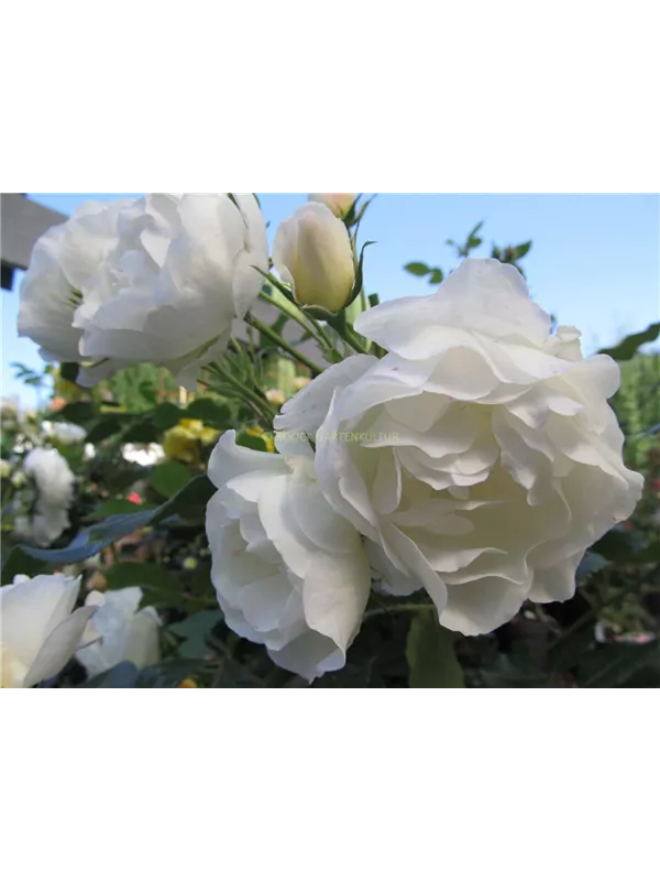 Die Strauchrose 'Weiße Wolke'®(s) weist eine gute Frosthärte auf.